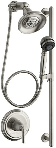 - Package includes a multifunction handshower and showerhead, showerarm with diverter, slide bar kit and Devonshire valve trim