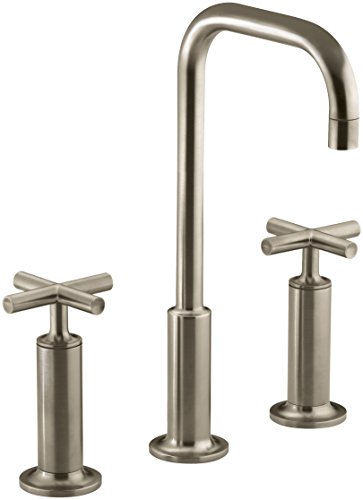 Fluid design lines for beauty and ease of cleaning. Kohler K-14408-3-BV Purist Widespread Lavatory Faucet with High Gooseneck Spout and High Cross Handles, Vibrant Brushed BronzePurist faucets combine simple, architectural forms with sensual design lines and careful detailing. Both sculptural and functional, this widespread lavatory faucet promises inviting visual appeal of classic modernity, and features a high gooseneck spout and two high cross handles.Kohler K-14408-3-BV Purist Widespread Lavatory Faucet with High Gooseneck Spout and High Cross Handles, Vibrant Brushed Bronze Features: Two-handle widespread lavatory faucet for 8" - 16" centers Kohler ceramic disc valves exceed industry longevity standards two times for a lifetime of durable performance Solid brass construction for durability and reliability Kohler finishes resist corrosion and tarnishing, exceeding industry durability standards two times Fluid design lines for ease of cleaning Spout Reach: 5 1/2" Flow Rate: 1.5 gpm (5.7 lpm) ADA compliant