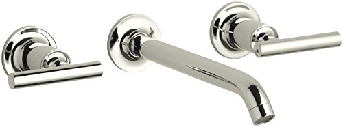 Fluid design lines for ease of cleaning. Kohler K-T14415-4-SN Purist Two Handle Wall Mount Lavatory Faucet Trim with 8 1/4" Spout and Lever Handles, Valve Not Included, Vibrant Polished NickelPurist faucets combine simple, architectural forms with sensual design lines and careful detailing. Both sculptural and functional, this wall-mount trim promises inviting visual appeal of classic modernity, and features an 8 1/4" spout and two lever handles.Kohler K-T14415-4-SN Purist Two Handle Wall Mount Lavatory Faucet Trim with 8 1/4" Spout and Lever Handles, Valve Not Included, Vibrant Polished Nickel Features: Kohler ceramic disc valves exceed industry longevity standards two times for a lifetime of durable performance Solid brass construction for durability and reliability Kohler finishes resist corrosion and tarnishing, exceeding industry durability standards two times Fluid design lines for ease of cleaning Modern, minimal design complements the Purist Suite and accessories Flow Rate: 1.5 gpm (5.7 lpm) ADA compliant