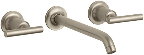 Fluid design lines for ease of cleaning. Kohler K-T14415-4-BV Purist Two-Handle Wall-Mount Lavatory Faucet Trim with 8-1/4" Spout and Lever Handles, Less Drain, Valve Not Included, Vibrant Brushed BronzePurist faucets combine simple, architectural forms with sensual design lines and careful detailingBoth sculptural and functional, this wall-mount trim promises inviting visual appeal of classic modernity, and features an 8-1/4" spout and two lever handlesKohler K-T14415-4-BV Purist Two-Handle Wall-Mount Lavatory Faucet Trim with 8-1/4" Spout and Lever Handles, Less Drain, Valve Not Included, Vibrant Brushed Bronze Features: Kohler ceramic disc valves exceed industry longevity standards two times for a lifetime of durable performance Solid brass construction for durability and reliability Kohler finishes resist corrosion and tarnishing, exceeding industry durability standards two times Fluid design lines for ease of cleaning Modern, minimal design complements the Purist Suite and accessories Low-flow rator option available (please see latest price book) Kohler Lifetime Limeted Warranty