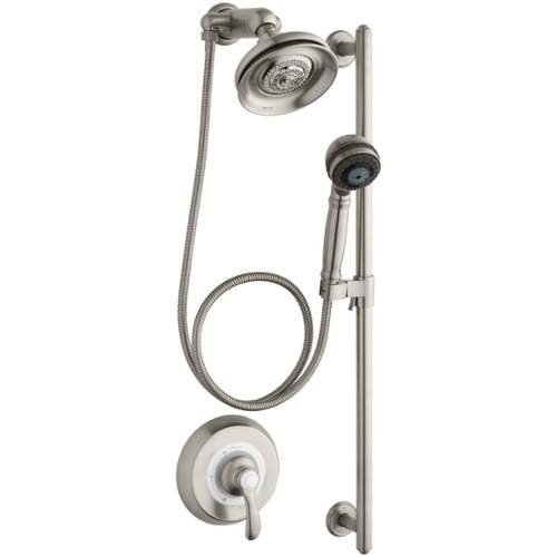 Take the guesswork out of designing a custom shower with this Fairfax Essentials performance showering package. Designed to upgrade your master or secondary bath, the package includes a multifunction showerhead and handshower, showerarm with diverter, slidebar kit, and Fairfax valve trim featuring a lever handle. Pair the trim with a Rite-Temp pressure-balancing valve, which maintains your desired water temperature during pressure fluctuations.
