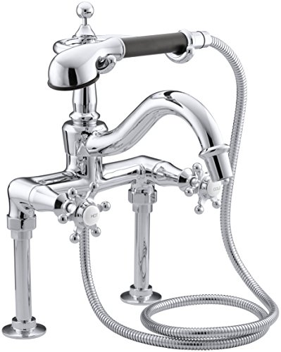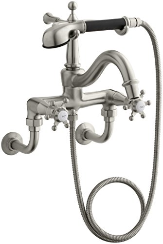 Completes Antique design solution with Kohler accessories. Kohler K-110-3-BN Antique Bath Faucet with Handshower and Six-Prong Handles, Vibrant Brushed NickelThis elaborate, nostalgic solid brass bath faucet evokes the style of a bygone era. The deck-mounted, six-prong handles and handshower form a beautiful bath profile and help provide a convenient bathing experience with a flow rate of 21 gpm. Ceramic disc valves and Kohler finishes ensure years of reliable use for this Antique faucet.Kohler K-110-3-BN Antique Bath Faucet with Handshower and Six-Prong Handles, Vibrant Brushed Nickel Feature: Kohler finishes resist corrosion and tarnishing, exceeding industry durability standards over two times Completes Antique design solution with Kohler accessories Brass construction Bath- or deck-mount Brass valve bodies Six-prong handles 1/2 Inch quarter-turn washerless ceramic disc valves 9-5/8 Inch (24.4 cm) spout with diverter Antique handshower with 60 Inch (152.4 cm) hose* Image shown may vary by color, finish, or material