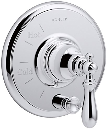 Kohler T72768-9M-CP Artifacts Rite-Temp pressure-balancing valve trim with push-button diverter and swing lever handle, Less Valve, Polished Chrome [並行輸入品]