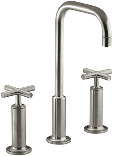 Fluid design lines for beauty and ease of cleaning. Kohler K-14408-3-BN Purist Widespread Lavatory Faucet with High Gooseneck Spout and High Cross Handles, Vibrant Brushed NickelPurist faucets combine simple, architectural forms with sensual design lines and careful detailing. Both sculptural and functional, this widespread lavatory faucet promises inviting visual appeal of classic modernity, and features a high gooseneck spout and high lever handles. Kohler K-14408-3-BN Purist Widespread Lavatory Faucet with High Gooseneck Spout and High Cross Handles, Vibrant Brushed Nickel Features: Two-handle widespread lavatory faucet for 8" - 16" centers Kohler ceramic disc valves exceed industry longevity standards two times for a lifetime of durable performance Solid brass construction for durability and reliability Kohler finishes resist corrosion and tarnishing, exceeding industry durability standards two times Fluid design lines for ease of cleaning Completes Purist design solution with Kohler fixtures and accessories. Kohler Lifetime Limited Warranty ADA Compliant Meets EPA Criteria