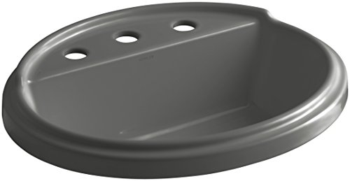 KOHLER K-2992-8-58 Tresham Oval Shaped Self-Rimming Bathroom Sink with 8-Inch Widespread Faucet Drilling, Thunder Grey [並行輸入品]