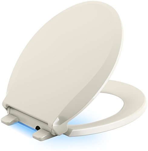 Up to 6 months of battery life (uses 4 aa batteries, not included). With KOHLER nightlight technology, you can safely locate your toilet in the dark without turning on the light. This cachet toilet seat offers a choice of two brightness levels so you can adjust the lighting as you please. An led guide light on a 7-hour cycle helps you see your toilet in the dark, and led lighting illuminates the bowl when the lid is lifted. Unique grip-tight bumpers hold the seat firmly in place and prevent shifting. This soft-close seat also features innovative technology that prevents the seat from slamming and simplifies both cleaning and installation.