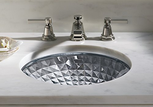 With reflective facets of cut glass, Kallos shines like a jewel in the bath or powder room. Part of the Artist Editions line of bath sinks, the spun-glass under-mount basin offers a distinctive architectural pattern reminiscent of fine crystal. This basin's design creates stunning visual depth while appropriately concealing the view of toiletries stored inside the vanity.