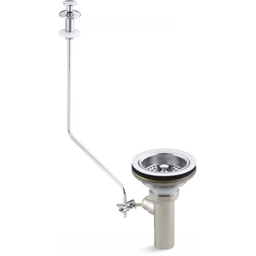 K-8802-RL-CP Features: -Brass tailpiece with connection to lift rod components for a pop-up drain.-Strainer is for sink installations with 3.5'' or 4'' outlets. Includes: -1-1/4'' x 4'' tailpiece, removable basket, stopper included. Options: -Available in the following finishes: polished chrome. Construction: -Solid brass construction for durability and reliability. Dimensions: -Overall Dimensions: 14.5'' H x 4.5'' W x 4.5'' D.