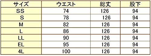 ■素材/ポリエステル65%レーヨン35% サイズ ウエスト 総丈 股下 SS 74 126 94 S 78 126 94 M 82 126 94 L 86 126 94 LL 90 126 94 EL 95 126 94 4L 100 126 94 同素材シリーズ 鳶シャツ 三つボタン超ロング ■4L以上は200円アップ 確認メールで単価変更します