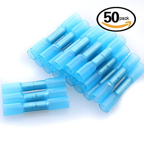 Glarks 50pcs 16-14 Gauge Butt Splice Nylon Heat Shrink Waterproof Quick Disconnect Electrical Insulated Crimp Terminals Connectors Assortment Kit