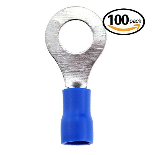 Hilitchi 100Pcs 16-14AWG Insulated Terminals Ring Electrical Wire Crimp Connectors (Blue M6)