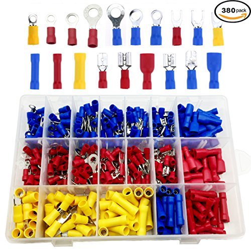 380Pcs Quick Disconnect Electrical Insulated Butt Female | Male Spade Fork Ring Solderless Crimp Connectors Terminals Assortment Kit ( 22-16 | 16-14 | 12-10 Gauge)