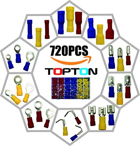 TOPTON 720pcs Wire ConnectorsMixed Assorted Lug Kit Insulated Electrical Crimp Connectors Crimp Ring Terminals Spade Connector Set