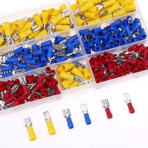 Glarks 280pcs 22-16 / 16-14 / 12-10 Gauge Semi-Insulated Male / Female Spade Quick Splice Crimp Terminals Connectors Assortment Kit