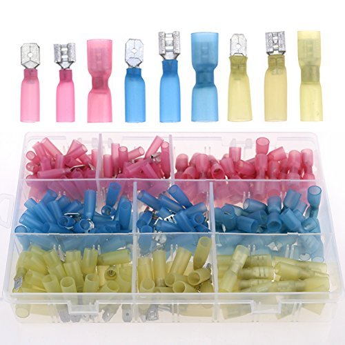 Glarks 200pcs 22-16 / 16-14 / 12-10 Gauge Nylon Heat Shrink Waterproof Fully / Semi Female / Male Electrical Insulated Spade Quick Splice Crimp Terminals Connectors Mix Assortment Kit