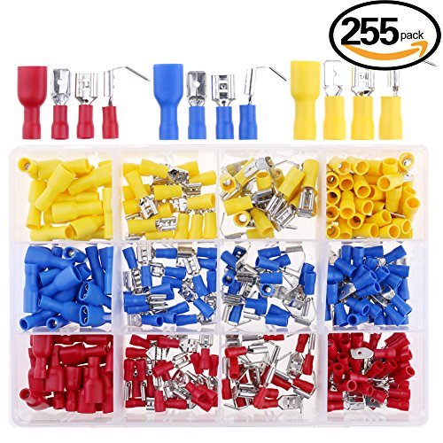 Hilitchi 255Pcs 22-16 / 16-14 / 12-10AWG Fully Insulated Female / Male Spade Quick Wire Crimp Terminals Connectors Kit