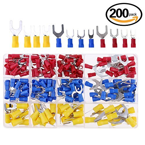 Hilitchi 200Pcs 22-16 / 16-14 / 12-10AWG Fork Spade Insulated Terminals Quick Splice Electrical Wire Crimp Connectors Kit