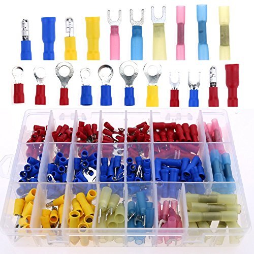 Glarks 330pcs 22-16 / 16-14 / 12-10 Gauge Nylon Heat Shrink Waterproof Electrical Insulated Quick Splice Ring Fork Spade Butt Bullet Crimp Terminals Connectors Assortment Kit