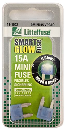 Littelfuse 0MIN015.VPGLO MINI SmartGlow 12 Volt DC 15 Amp Fuse (Pack of 2)