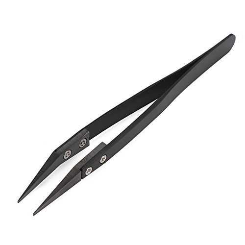 DROK High-Temperature Resistant Ceramic Tweezers Heat Resistant Acid and Alkali Resistant and Anti-magnetic Ceramic Tipped Tweezers with Black Handle and Black Angled Tips