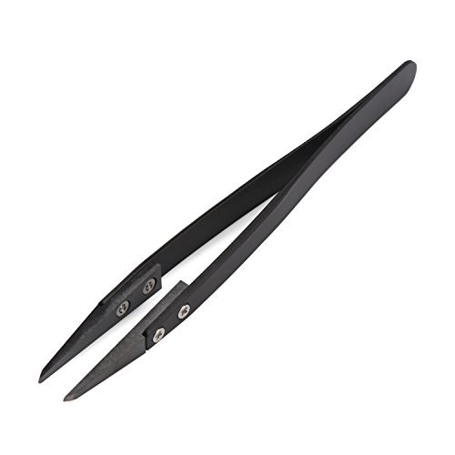 DROK High-Temperature Resistant Ceramic Tweezers Heat Resistant Acid and Alkali Resistant and Anti-magnetic Ceramic Tipped Tweezers with Black Handle and Black Blunt Tips [並行輸入品]