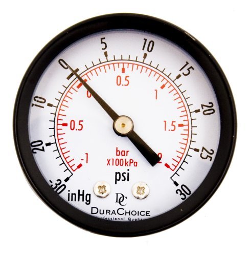 DuraChoice 2 Dial Utility Vacuum Pressure Gauge for Air Compressor Water Oil Gas 1/4 NPT Center Back Mount Black Steel Case -30HG/30PSI [並行輸入品]