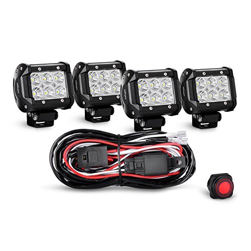 Nilight 4PCS 4 Inch 18W Flood LED Light Bars Led Work Lights Fog Lights Off Road Light Driving Lights With Off Road Wiring Harness 2 Years Warranty