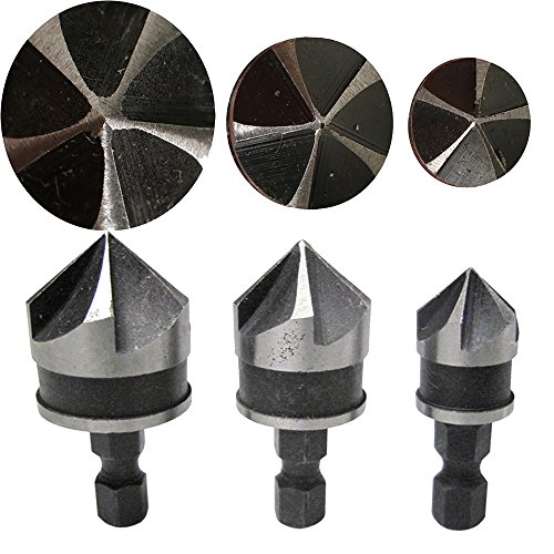 UNHO 面取り カッター カウンタシンク 六角シャンク 3本セット 12mm 16mm 19mm 90度 5刃 ドリル ビット 木工 鉄工