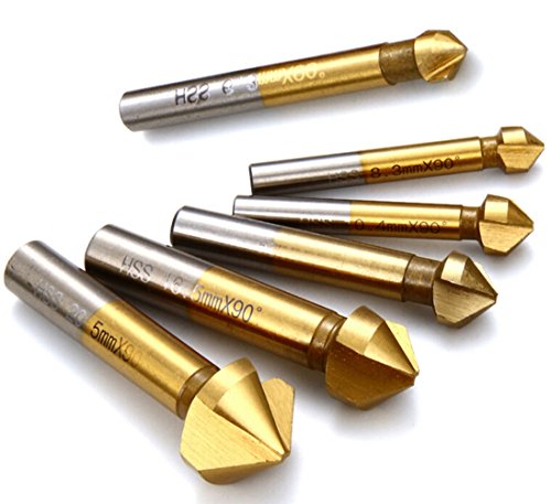 UNHO カウンターシンク 6本セット 3刃数 面取り90度6.3mm 8.3mm 10.4mm 12.4mm 16.5mm 20.5mm チタンコーティング