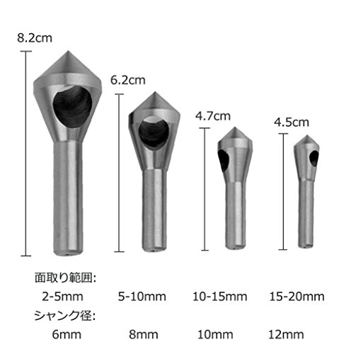 面取り ドリル ビット 面取りカッター 高速度鋼 超硬 円型 バリ取り 面取り範囲 2-5mm/5-10mm/10-15mm/15-20mm 穴開タイプ 4本セット