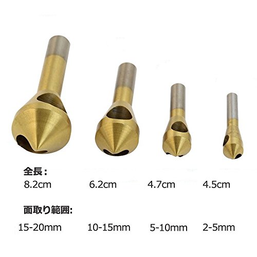 面取り ドリル ビット 面取りカッター 高速度鋼 超硬 円型 バリ取り 面取り範囲 2-5mm/5-10mm/10-15mm/15-20mm 穴開タイプ 4本セット