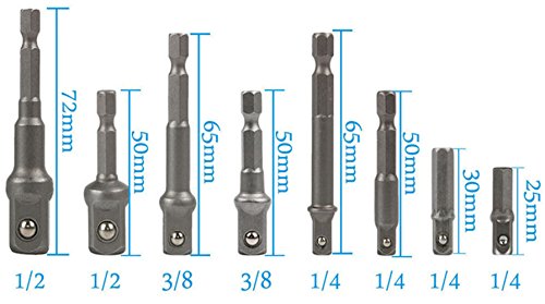 電動ドリル用ソケットアダプターセット 8本セット 差込角 1/4"(6.35mm) 3/8"(9.53mm) 1/2"(12.7mm)