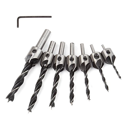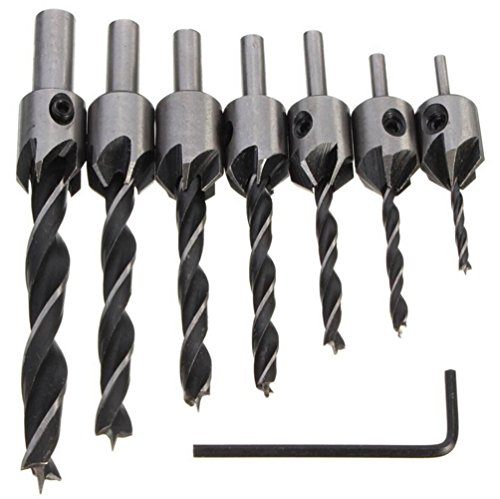 UNHO 皿取錐ドリルビット 3m-7m 7本セット 木工用ドリル 下穴 面取り カッター バリ取り ハイス ドリル