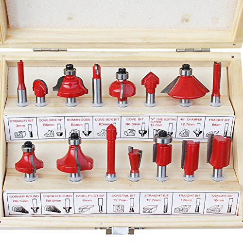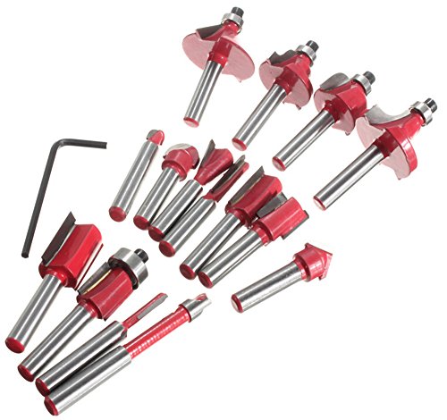 超硬ルータービット 6.35mm軸 15本セット トリマービットセット 電動ルーター用 木工 工具 ドリル