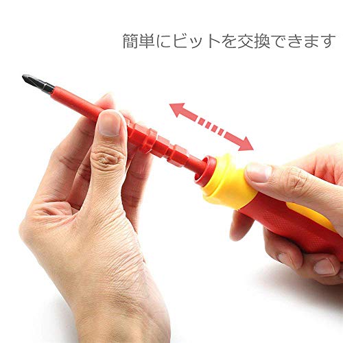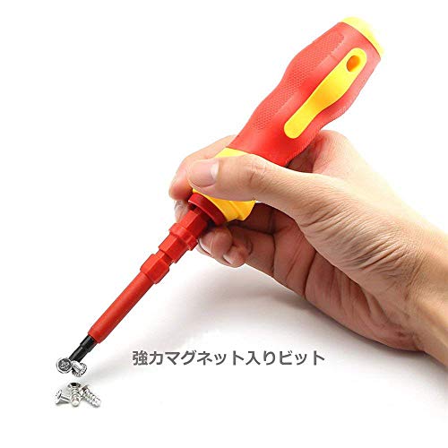 絶縁ドライバー セット マグネット付 差し替え式 7本14点仕様 プラス/マイナス/六角/Y型/U型/三角 ドライバー ビット 絶縁工具