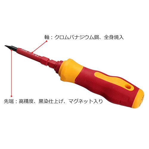 - 差し替え式絶縁ドライバー7本セットです。両端利用可能で、7本で14点仕様のドライバーを使用できます。