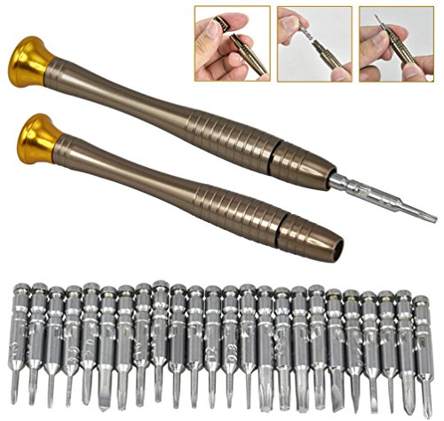 KRW 特殊 精密 ドライバーセット 24ビット・1ホルダ プラス マイナス トルクス 六角 Y型 星型 スマホ 腕時計 カメラ パソコン ゲーム機 修理 スクリュードライバー 25点 キーケース型