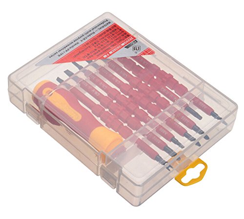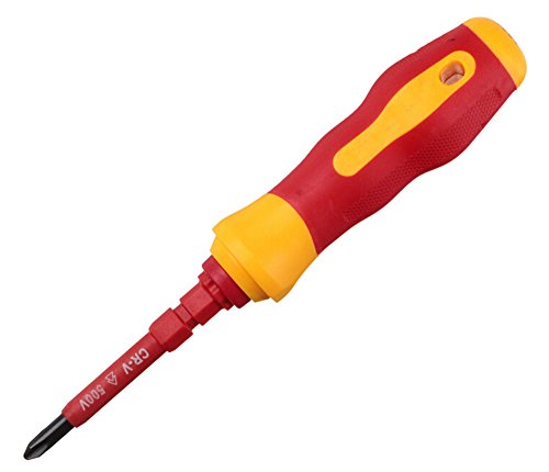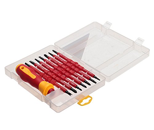 KRW 絶縁ドライバーセット 差し替えタイプ 7ピース 六角 プラス マイナ Y型 U型 ドライバー など14点型 電気技術者専用 修理工具 ラチェットドライバーセット 収納ケース付