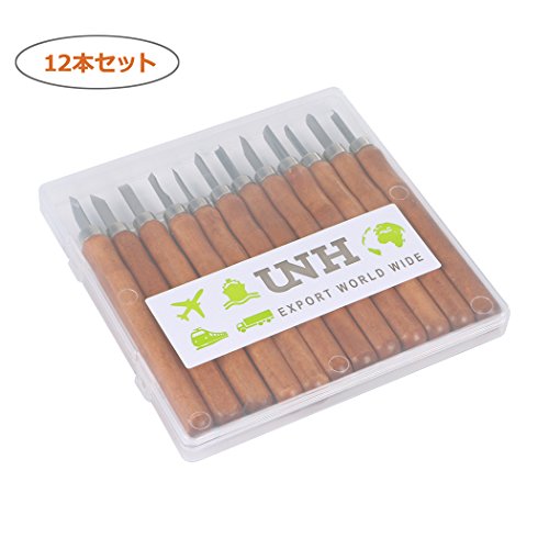 UNHO 彫刻刀 12本セット 木工用 篆刻刀 木彫り 彫刻 版画 篆刻 DIY 工具 初心者からプロまで適用 ケース付き
