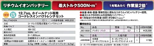 期間限定!! KTC JTAE424SP+1-HAPPY 12.7sqホイールナット専用インパクトレンチ 予備バッテリー付き