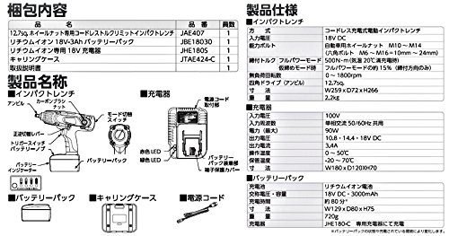 - 【補給部品】 JBE18030:バッテリーパック JHE180S:リチウムイオン専用充電器 JAE402-B:交換用カーボンブラシセット