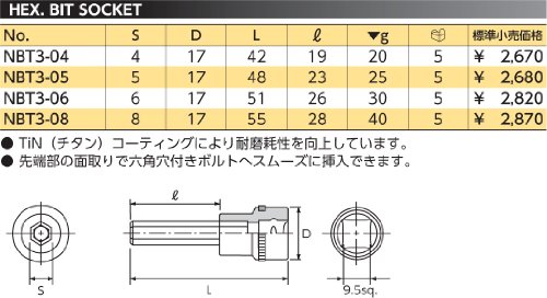 【KTC】 ネプロス 9.5sq.ヘキサゴンビットソケット[型番 : NBT3-05]