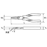 ・先端部には対象物をつかんでも滑らないようにクロス溝を施しています 商品名 PSL200BN ラジオペンチ(ベントノーズタイプ) 199mm メーカー品番 PSL200BN 特長 先端部には対象物をつかんでも滑らないようにクロス溝を施しています 仕様 切断能力 軟線:φ2.3 切断能力 硬線:φ1.8 角度:45° サイズ L:199 l:25 W1:55 W2:18 T1:15.5 T2:10