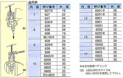 リダクションタイプのスターターモーターや電動工具などのアーマチュアベアリングの取り外しに使用。