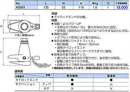 KTCのタイロットエンドセパレーター(オフセットタイプ) AS201です。 -用途- タイロットエンドの分離