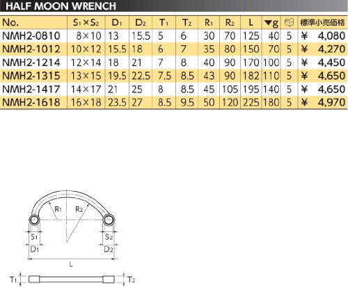 【KTC】 ネプロス ハーフムーンレンチ [型番:NMH2-0810]
