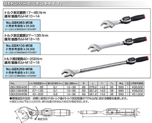 トルク管理ができるモンキレンチ 17~85N・mタイプ