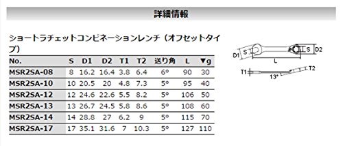 【KTC工具】 ショートラチェットコンビネーションレンチ(オフセットタイプ) 12角 12mm / MSR2SA-12