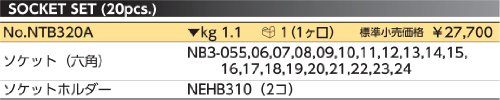 【KTC】 ネプロス 9.5sq.ソケットセット[20コ組][型番 : NTB320A]