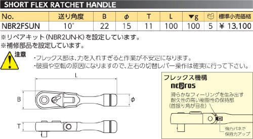 【KTC】 ネプロス 6.3sq.ショートフレックスラチェットハンドル[型番 : NBR2FSUN]